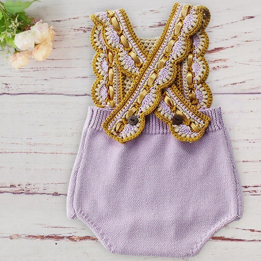 Baby Girls Gold & Purple Knitted Romper (Age 3m-18m)