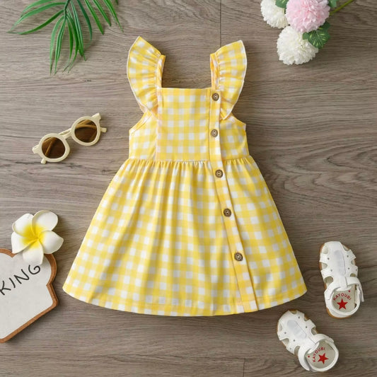Baby Girls Yellow Checked Dress (Age 3M-9M)