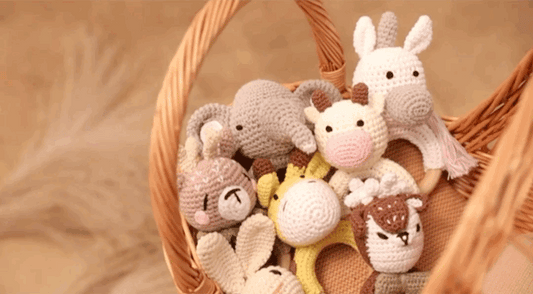 Baby Wooden Animal Teether Ring Rattle