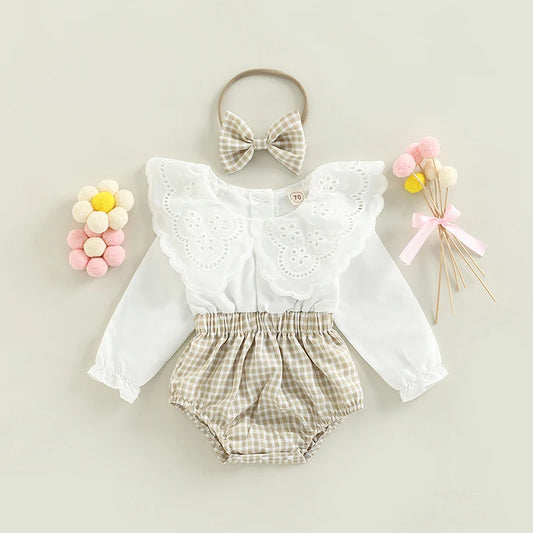 Baby Girls Plaid Romper & Headband (Age 6-18M)