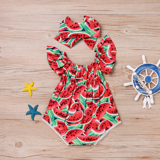 Baby Girls Watermelon Romper & Headband (Age 6m-24m)