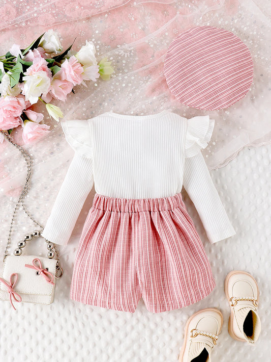 Baby Girls Long Sleeve Top Shorts & Hat Set (Age 6M-3YRS)