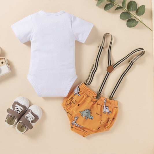 Baby Boys Bodysuit & Dinosaur Shorts With Braces Set (Age 9M-12M)