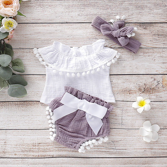 Baby Girls Pom Pom Top & Shorts (Age 6M-3YRS)