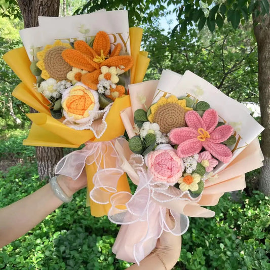 Plush Rose Sunflowers Tulip Flower Crochet Knitted Gift Bouquets