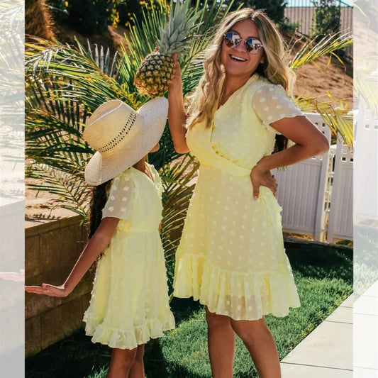 Mother & Daughter Matching Short Sleeves V-neck Polka Dot Dress (Mommy & Me)