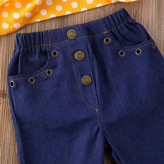 Girls Yellow Top & Bell Bottom Jeans Set (Age 24M-5YRS)