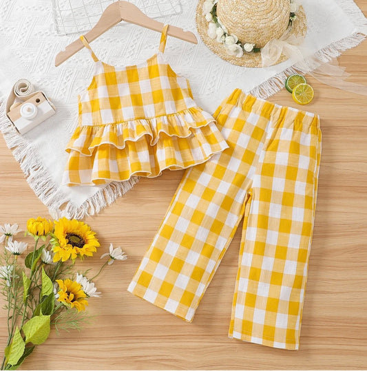 Girls Yellow Checked Top & Trousers (Age 3-6 YRS)