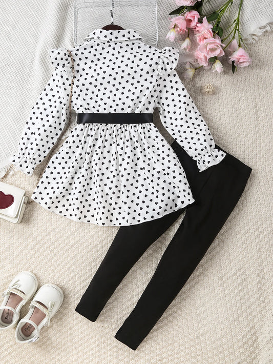 Girls Polka Dot Shirt Leggings & Belt Set (Age 24M-7YRS)