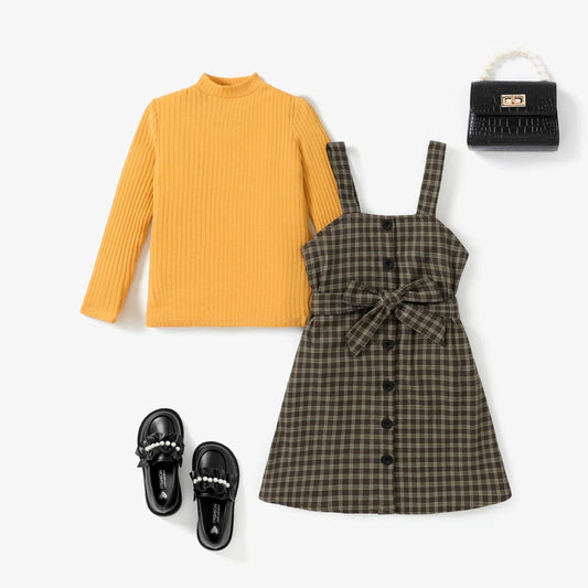 Girls Yellow Top & Houndstooth Dress Set (Age 5-12YRS)