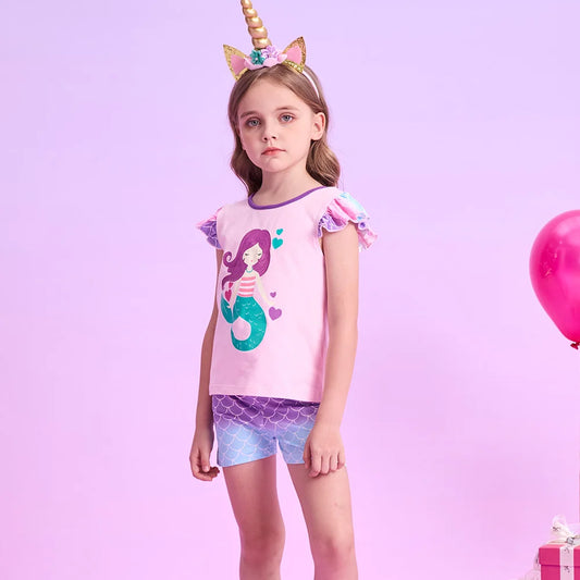 Girls Mermaid Shorts & T-Shirt Set (Age 3-12YRS)