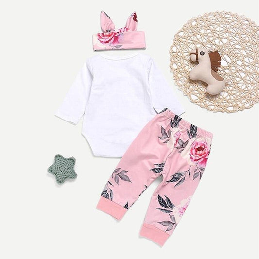 Girls Toddler 3 Pack “Little Sister” Bodysuit Vest & Floral Trousers & Headband Set (Age 6m-4yrs)