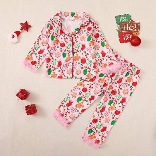 Girls Pink Christmas Print Pyjamas (Age 18M-5YRS)