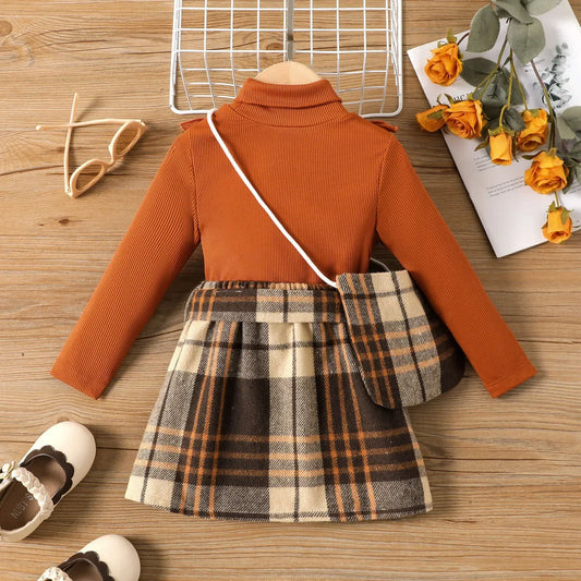 Girls' Top & Bow Plaid Skirt & Hat Set (Age 3-7YRS)