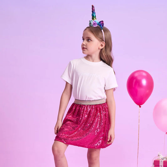 Girls Pink Sequin Skirt (Age 3-10YRS)