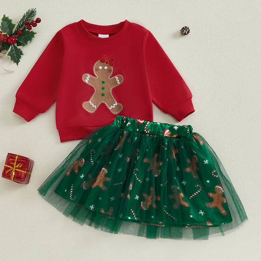Baby/Toddler Girls Gingerbread Top & Tulle Skirt Christmas Outfit (Age 6M-4YRS)