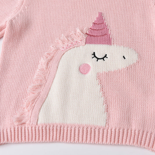 Girls Pink Unicorn Knitted Jumper (Age 3-8YRS)