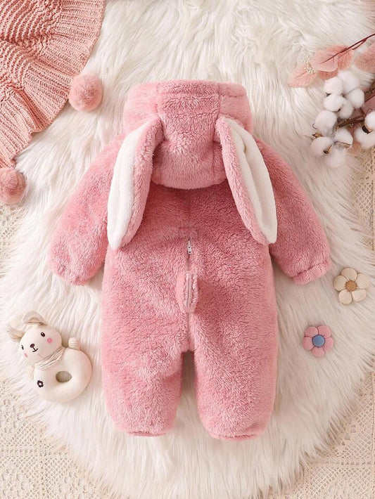 Baby Fleece Hooded Rabbit Romper – 3D Bunny Ears | Long Sleeve & Pants Set (Age Newborn-24M)