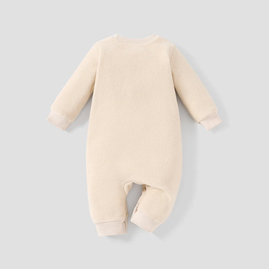 Newborn White Bear Hooded Romper – Plush Zip-Up Costume for Autumn & Winter | Ages 1M–12M