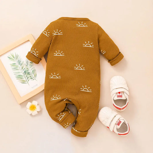 Baby Boy Cotton Ribbed Sun Print Long-Sleeve Jumpsuit (Age Newborn-18M)