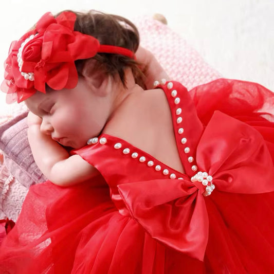 Baby Girls Red Pearl Embellished Photography Dress (Age Newborn - 3 Month)