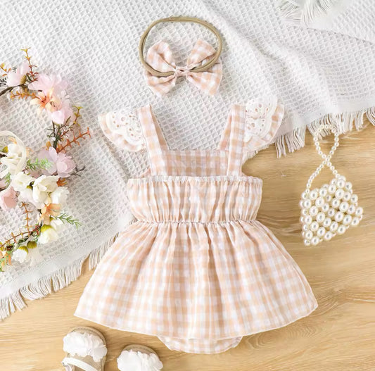 Baby Girl Pink Plaid Romper & Headband (Age Newborn - 18M)