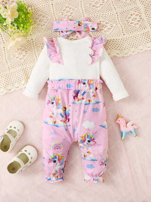 Baby Girls Pink Unicorn Jumpsuit & Headband (Age Newborn-18M)