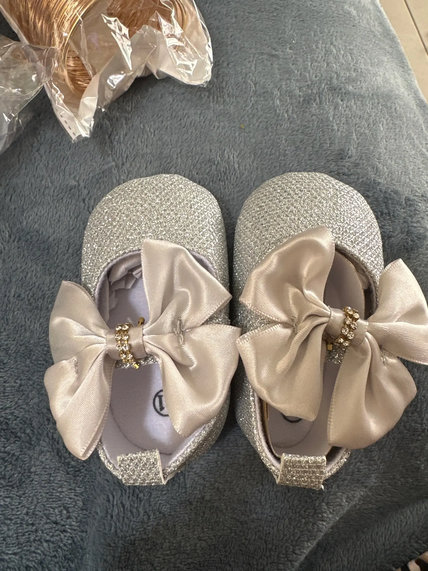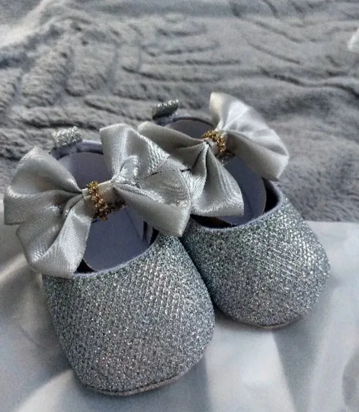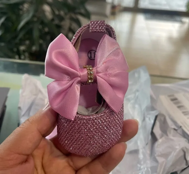 Add some sparkle to your little one's outfit with our Baby Girls Rhinestone Embellished Shoes! Designed for ages newborn to 18 months, these shoes feature an anti-slip sole and a cute butterfly-knot bow. The hook and loop closure makes them easy to put on and take off. Perfect for tiny fashionistas!