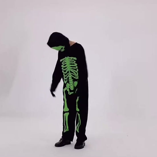 Transform your little one into a spooky skeleton with our Boys Glow In The Dark Skeleton Costume! Made with comfortable, lightweight polyester, this costume is perfect for trick-or-treating and Halloween parties. Watch as the skeleton design glows in the dark, adding an extra element of fun to your child's costume. Available for ages 3-12 years.