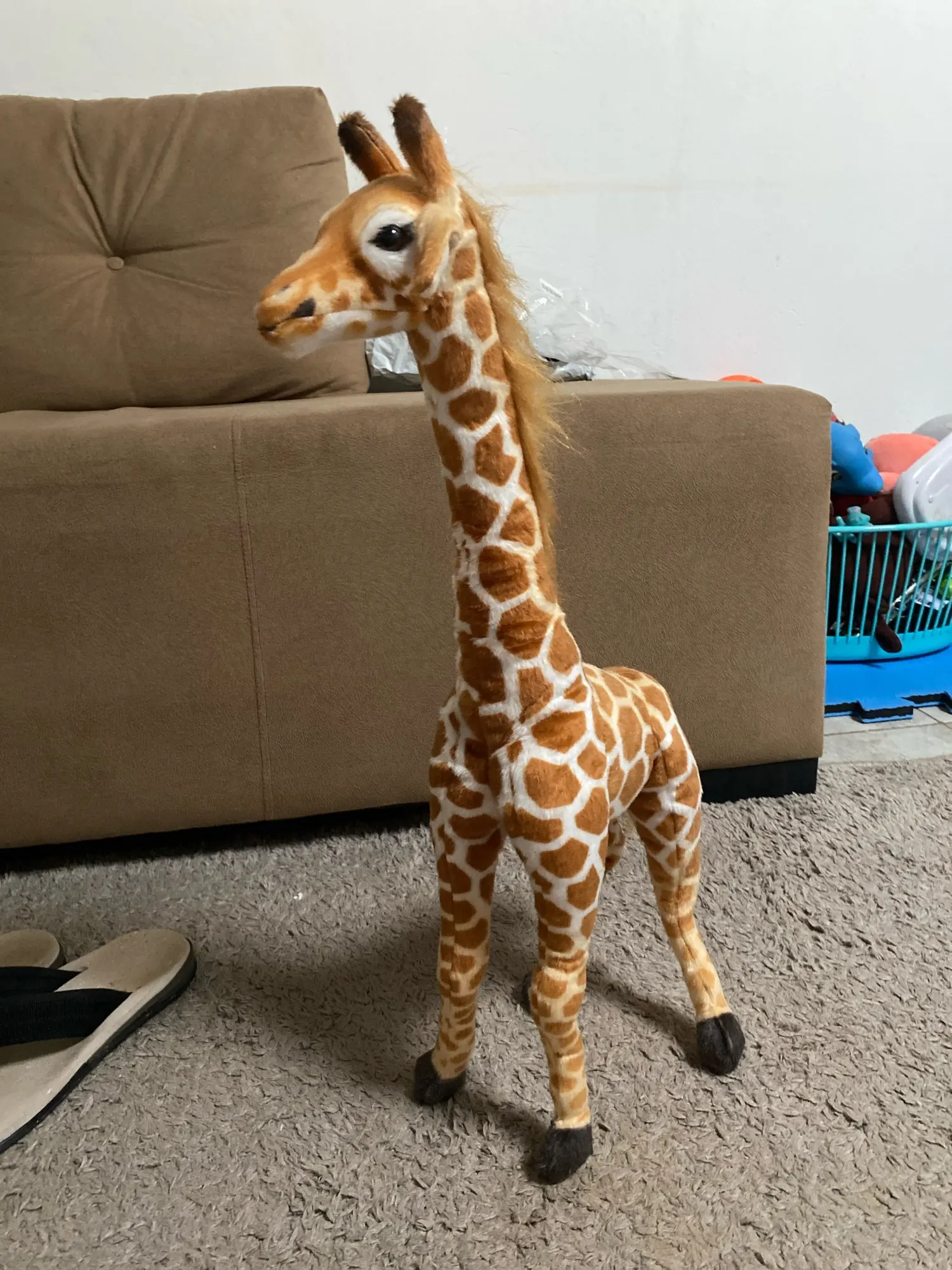 This is not just any giraffe plush toy, it's a larger-than-life nursery companion! With a choice of standing or kneeling positions, it's perfect for imaginative play and cuddles. Whether it's used for storytime or snuggles, this playful plush adds a touch of whimsy to any child's room.